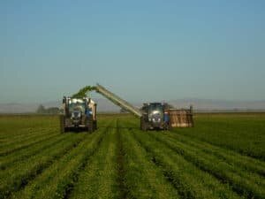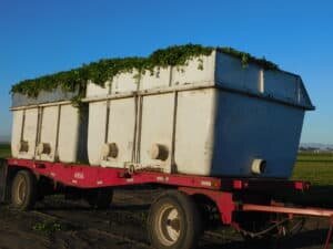 This behind the scenes look at basil harvesting is the first glimpse at herbs that we have been able to see on the blog! The basil harvesting process is all done by machines and requires a basil harvesting machine and a trailer to drive alongside of the machine to gather the harvested product.