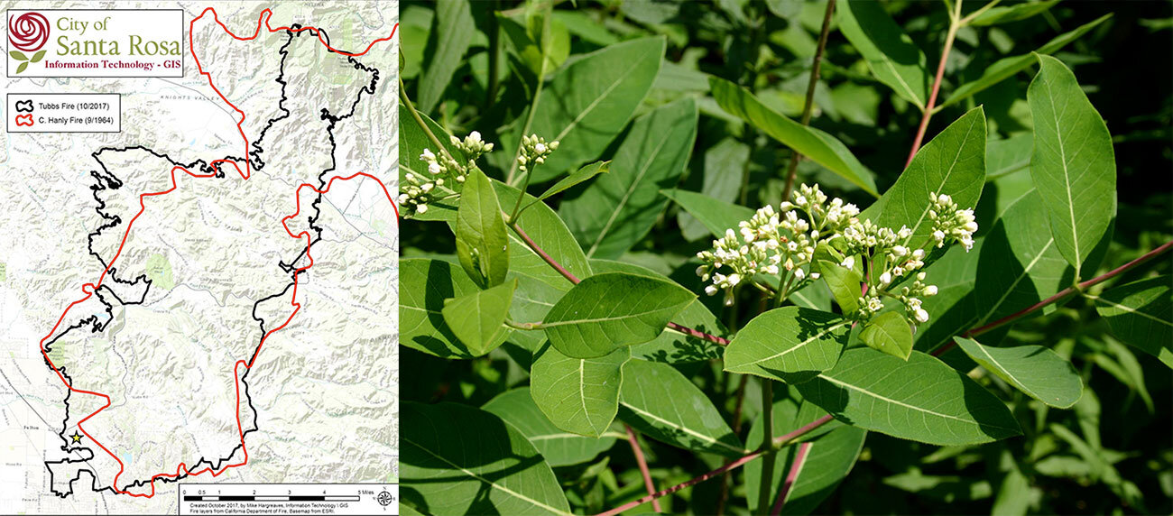 Fire was used historically as a tending strategy by indigenous people to clear brush and promote the growth of dogbane, but recent fire regulations and nearby developments have made it difficult to maintain this practice. In a rare silver lining to recent fires in the region, the patch burned in 2017 as part of the Tubbs Fire, and those tending the patch now report vigorous and healthy growth, partly due to the reduction of invasive Himalayan blackberry and Harding grass.