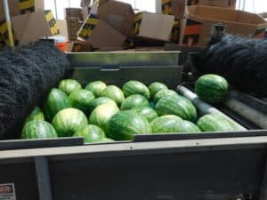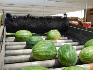 -The watermelons pass through three different brush steps (without the use of any wash water)
